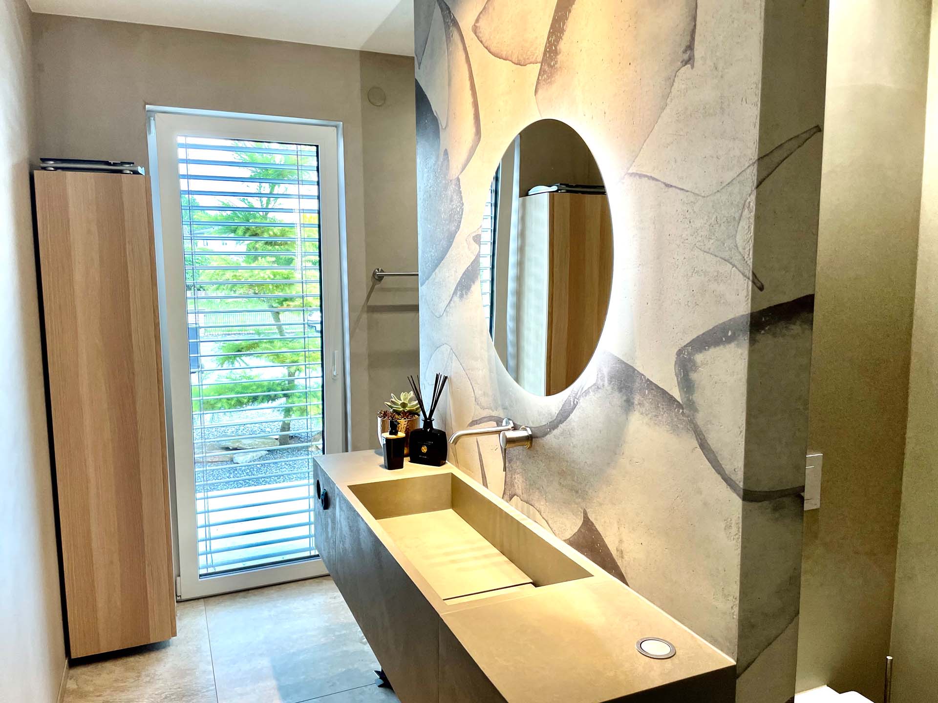 Die 6 Grundelemente und 52 Farben können mit 9 verschiedenen Zuschlägen, darunter Goldglimmer, Silberglimmer, Flachs oder Muschelbruch kombiniert werden. Hinzu kommen 12 Effektlasuren wie Platin, Warmsilber, Grüngold, Altbronze oder Lavarot. Ihren gestalterischen Vorstellungen sind also kaum Grenzen gesetzt. Wohnen und Leben in seiner schönsten Form – Von der Küche über den Wohnraum bis zum Badezimmer erzeugen wir mit der Spachteltechnik lebendige, individuelle Oberflächen.